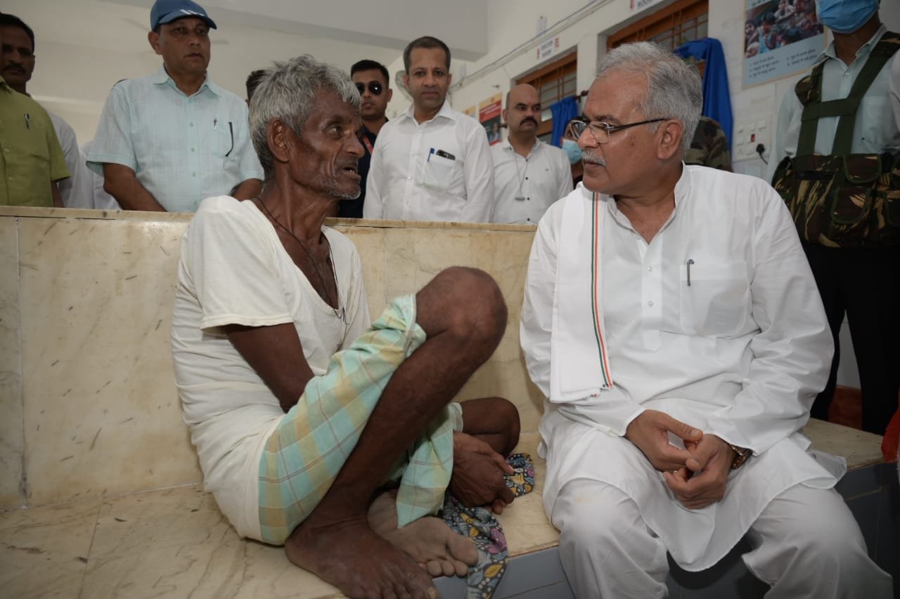 बुजुर्ग मरीज के बाजू में बैठकर मुख्यमंत्री ने जाना हाल