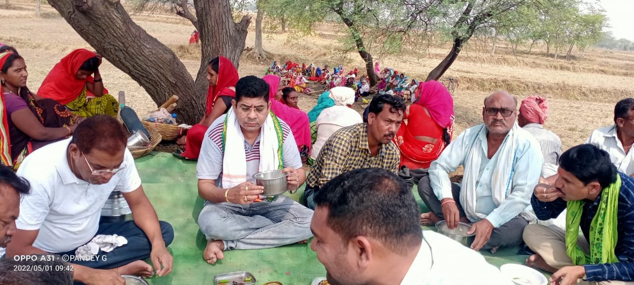 श्रमिक दिवस पर नगर पंचायत पाटन के अध्यक्ष भूपेन्द्र कश्यपने पार्षदों और स्वच्छता दीदीयों के साथ बोरे बासी का आनंद लिया
