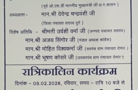 पाटन। समीपस्थ ग्राम देमार में कल 7 और 8 फरवरी को दो दिवसीय सस्वर मानस गान प्रतियोगिता का आयोजन किया गया है। कार्यक्रम में पूर्व...