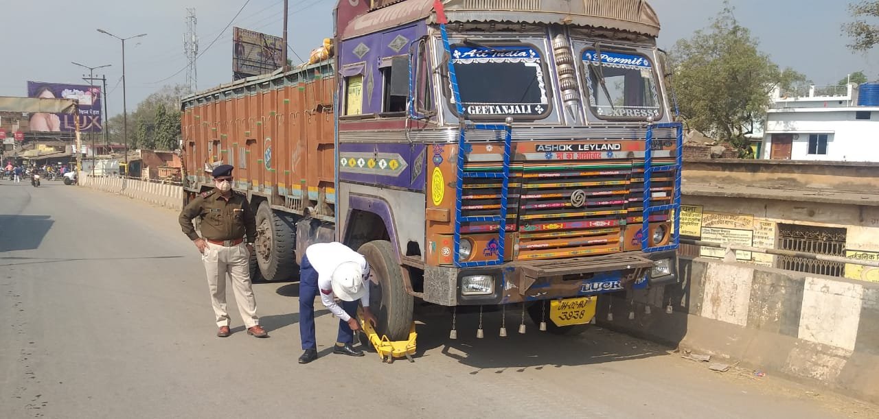 भाटापारा। शुक्रवार के बाद शनिवार रविवार को फिर जिला यातायात पुलिस की टीम एवं भाटापारा यातायात की पुलिस की संयुक्त टीम के द्वारा नगर के विभिन्न हिस्सों में यातायात व्यवस्था को सुगम बनाने के लिए कार्यवाही की गई और इसके साथ ही लोगों को यातायात के संबंध में समझाइश भी दी गई। रविवार को 96 लोगों के खिलाफ मोटर व्हीकल एक्ट के तहत कार्यवाही की गई जिनसे ₹31700 शमन शुल्क के रूप में वसूला गया। लगातार कार्यवाही के बाद सदर बाजार स्टेशन रोड गौरव पथ रोड ओवर ब्रिज सहित बस स्टैंड चौक पर रविवार को ट्रैफिक व्यवस्था में काफी सुधार दिखाई दिया जिला पुलिस अधीक्षक आई के एलेसेला एवं अतिरिक्त पुलिस अधीक्षक निवेदिता पाल के निर्देश पर भाटापारा में पिछले 3 दिनों से जिले के यातायात प्रभारी प्रमोद कुमार सिंह के नेतृत्व में धुआंधार कार्यवाही की गई इसके साथ ही पकड़े गए लोगों को समझाइश भी दी गई है शनिवार को सभी चौकों पर ट्रैफिक सिग्नल को चलाया गया और लोगों को ट्रैफिक सिग्नल के नियमों का पालन करने के लिए कहा गया वहीं रविवार को फिर से कार्यवाही सुबह से ही प्रारंभ कर दी गई जिसमें जयहिंद होटल के पास काफी देर तक ट्रैफिक को व्यवस्थित करने कार्य किया गया रविवार को भी यातायात नियमों का उल्लंघन करने बिना हेलमेट लगाए गाड़ी चलाने दोपहिया वाहनों में तीन सवारी चलने वाले बिना नंबर की गाड़ी चलाने वाले बिना लाइसेंस के गाड़ी चलाने वाले के विरुद्ध कार्यवाही कर समन शुल्क वसूला गया रविवार को पुनः कार्यवाही को आगे बढ़ाया गया रविवार को ओवरब्रिज में खड़ी ट्रक को लॉक किया गया ऐसे ही कई स्थानों पर लॉक की कार्यवाही की गई इस दौरान जिले के यातायात निरीक्षक प्रमोद कुमार सिंह ने खुद लोगों को विशेष रूप से समझाइश दी की वे लोग यातायात के नियमों का अनिवार्य रूप से पालन करें इससे सभी के लिए ठीक रहेगा रविवार को भी हुई यातायात की कार्यवाही से पूरे शहर में दिनभर हड़कंप रहा और जो गाड़ियां यहां वहां खड़ी कर देते थे वे लोग भी रविवार को लाइन से गाड़ी खड़ी करते दिखाई दिए पूरी कार्रवाई जिला यातायात प्रभारी प्रमोद कुमार सिंह के नेतृत्व में की गई कार्रवाई में प्रमुख रूप से भाटापारा यातायात के प्रभारी संजीव सिंह नेतराम वर्मा नवीन शुक्ला धनेश्वर दुबे अश्वनी कन्नौजे अमरजीत ध्रुव जितेंद्र राजपूत भूपेश यादव दिलीप पांडे वीरेंद्र महिलांगे कमल कवर ललित वर्मा लक्ष्मी प्रसाद यादव इत्यादि का विशेष योगदान रहा।