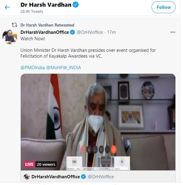 आज दोपहर को केंद्रीय स्वास्थ्य मंत्री डॉ. हर्षवर्धन ने वर्चुअल रुप से पुरस्कार देने की घोषणा की है। राज्य स्तरीय कायाकल्प अवार्ड को जिला अस्पताल, सामुदायिक स्वास्थ्य केंद्र, शहरी प्राथमिक स्वास्थ्य केंद्र, प्राथमिक स्वास्थ्य केंद्र व उपस्वास्थ्य केंद्र स्तर में बेहतर चिकित्सकीय सुविधा, साफ-सफाई के लिए कायाकल्प के तहत प्रशस्ति अवार्ड के लिए चुना गया है। राज्य स्तर पर स्वास्थ्य विभाग द्वारा कायाकल्प अवार्ड समारोह आगामी मार्च महीने में आयोजन कर पुरस्कारों के साथ इनाम की राशि प्रदान करेगी। कायाकल्प अवार्ड 2019-20 के अंतर्गत 10 जिला अस्पतालों, 31 सामुदायिक स्वास्थ्य केंद्रों, एक शहरी सामुदायिक स्वास्थ्य केंद्र, 153 प्राथमिक स्वास्थ्य केद्रों, 12 शहरी प्राथमिक स्वास्थ्य केंद्रों एवं 67 उपस्वास्थ्य केंद्रों (हेल्थ एंड वेलनेस सेंटर) को 70 फीसदी से अधिक अंक हासिल करने पर विजेता के रुप में चयन किया गया है।