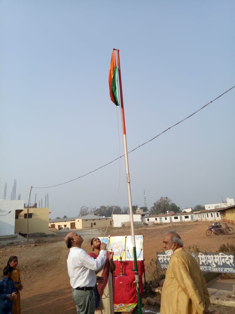 कार्यक्रम का शुभारंभ ध्वजारोहण एवं भारत माता की आरती के साथ हुआ। विद्यालय के प्रचार -प्रसार प्रमुख राम कुमार आचार्य भी उपस्थित थे।