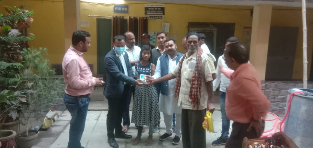 भाटापारा/ दोनों हाथो से अपाहिज स्कूली छात्रा को ऑन लाइन पढ़ाई में आ रही दिक्क़त को ध्यान में रखते हुए गरीब परिवार की इस होनहार बालिका का मनोबल उस वक्त बढ़ गया जब जनपद अध्यक्ष श्रीमती संगीता साहू की पहल और मदद से बच्ची को जनपद पंचायत में ना केवल एक स्मार्ट फोन मिला बल्कि विधायक निधि से उसे 10 हजार रूपये का चेक भी जनपद अध्यक्ष प्रतिनिधि केतुमान साहू ने सीईओ और जनपद सदस्यों की उपस्थिति में प्रदान किया।