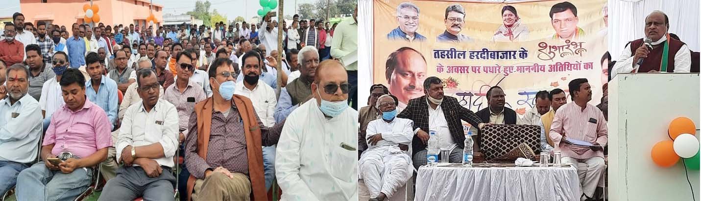 राजस्व मंत्री ने लोकार्पण समारोह को संबोधित करते हुए कहा कि हरदीबाजार में नये तहसील कार्यालय का शुभारंभ होने से आस-पास के लोगों को लाभ होगा उनके राजस्व संबंधी बंटवारा, सीमांकन, नामांकन जैसे मामलों के लिए अब हरदीबाजार तथा आस-पास के ग्रामीणों को पाली नहीं जाना पड़ेगा। राजस्व मामलों का निपटारा कम समय में ही हो जाएगा। राजस्व मंत्री ने ग्रामीणों की मांग पर महत्वपूर्ण घोषणा करते हुए कहा कि सप्ताह में एक दिन एसडीएम का लिंक कोर्ट भी हरदीबाजार में लगेगा। राजस्व मामलों के लिए ग्रामीणों को पाली एसडीएम कार्यालय भी नहीं जाना पड़ेगा। श्री अग्रवाल ने जनप्रतिनिधियों की मांग पर हरदीबाजार के आसपास के कुछ समीपस्थ गांवो को भी हरदीबाजार तहसील क्षेत्र में शामिल करने की बात कही। गौरतलब है कि हरदीबाजार को सन् 2000 में उपतहसील का दर्जा मिला था। राज्य शासन द्वारा बनाये गये 23 नवीन तहसीलों में हरदीबाजार भी शामिल है। तहसील हरदीबाजार के अंतर्गत् कुल 48 ग्राम शामिल हैं। तहसील के अंतर्गत 35 ग्राम पंचायत सहित 19 पटवारी हल्का शामिल हैं। हरदीबाजार और तिवरता दो राजस्व निरीक्षण मंडल है। तहसील हरदीबाजार में सीमांकन, बंटवारा, नामांतरण, भूमि बंटन, भूमि अर्जन, खदानों और खनिज से संबंधित 806 प्रकरण निराकृत किये जा चुके हैं। राजस्व मंत्री ने कहा कि कोरबा जिला स्वास्थ्य और शिक्षा के क्षेत्र में प्रदेश में अग्रणी होगा। उन्होंने कहा कि जिले के सभी स्कूलों में मूलभूत सुविधाओं का विस्तार किया जा रहा है।