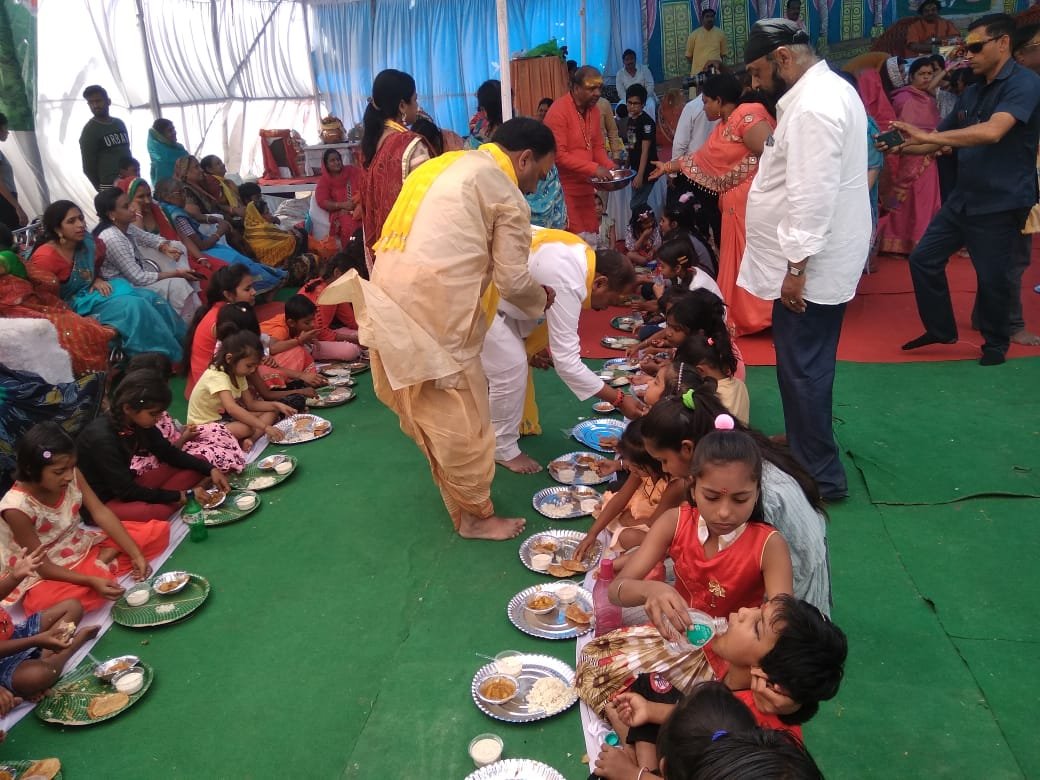 मनेंद्रगढ़ । सिद्ध बाबा धाम मनेंद्रगढ़ में श्रीमद् भागवत ज्ञान यज्ञ महोत्सव का हवन पूर्णाहुति व कन्या भोज के साथ शनिवार को भक्ति पूर्ण माहौल में समापन हो गया ! वृंदावन धाम से पधारे आचार्य श्रीकांत त्रिपाठी एवं उनकी सुपुत्री बालविदुषी कुमारी शीघ्रता त्रिपाठी के द्वारा 26 फरवरी 2021 से भव्य कलश यात्रा के साथ श्रीमद् भागवत कथा यज्ञ महोत्सव की शुरुआत की गई और 27 फरवरी 2021 से अपराह्न 3 बजे से रात्रि 9 बजे तक लगातार श्रीमद् भागवत कथा की अमृत रस धारा का रसास्वादन कराया गया ! प्रतिदिन सिद्ध बाबा धाम में श्रद्धालुओं की अपार भीड़ कथा का श्रवण करने पहुंच रही थी ! शनिवार 6 मार्च 2021 को प्रातः 10 बजे से हवन शुरू किया गया और दोपहर 1बजे पूर्णाहुति की गई उसके पश्चात कथा स्थल पर विशाल कन्या भोज का आयोजन किया गया तथा ब्राह्मण भोज कराया गया ! इस अवसर पर विशाल भंडारे का आयोजन किया गया था जहां पर हजारों की संख्या में श्रद्धालु जन पहुंचकर भंडारे का प्रसाद ग्रहण कर पुण्य लाभ अर्जित किया ! इस दौरान कथावाचक आचार्य श्रीकांत त्रिपाठी के द्वारा शिव भक्तों को स्मृति चिन्ह प्रदान कर सम्मानित भी किया गया ! समापन अवसर पर भरतपुर सोनहत विधायक गुलाब कमरो एवं नगर पालिका उपाध्यक्ष कृष्ण मुरारी तिवारी सहित अनेक शिव भक्तों ने सिद्ध बाबा धाम पहुंचकर हवन किया और भंडारे का प्रसाद ग्रहण किया! संपूर्ण कार्यक्रम को संपन्न कराने में श्री सिद्ध बाबा सेवा समिति का सराहनीय योगदान रहा ! भागवत कथा के दौरान प्रतिदिन भंडारे का आयोजन श्रद्धालुओं के लिए किया गया था ! उक्त आयोजन की सर्वत्र प्रशंसा की जा रही है !