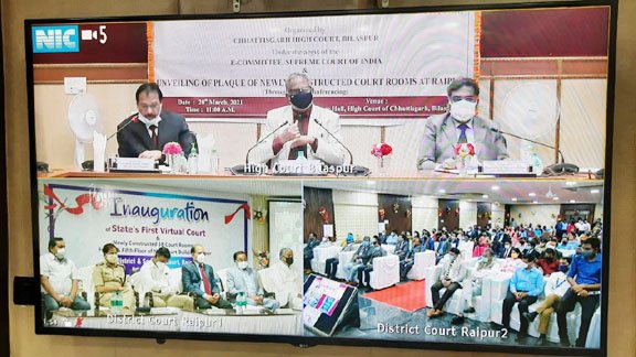 रायपुर / छत्तीसगढ़ उच्च न्यायालय के मुख्य न्यायाधीश माननीय न्यायमूर्ति पी आर रामचंद्र मेनन ने आज प्रातः 11:00 बजे राज्य के प्रथम वर्चुअल कोर्ट तथा नवीन न्यायालय भवन रायपुर के चौथे एवं पांचवी मंजिल पर निर्मित किए गए 18 कोर्ट रूम का ऑनलाइन शुभारंभ किया। इस कार्यक्रम की अध्यक्षता रायपुर के पोर्ट फोलियो जज न्यायमूर्ति प्रशांत कुमार मिश्र ने की। कार्यक्रम के विशिष्ट अतिथि के रूप में कंप्यूटराइजेशन कमेटी के अध्यक्ष माननीय न्यायमूर्ति मनीन्द्र मोहन श्रीवास्तव मौजूद थे।