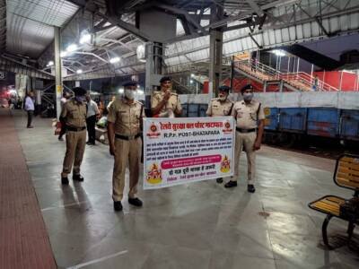 रेलवे प्लेटफॉर्म पर प्रतिबंधित सामग्री न लें जाने लोगों को किया गया जागरूक