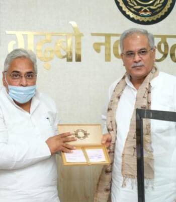 भंडारगृह अध्यक्ष वोरा ने मुख्यमंत्री को दिया एक वर्ष का रिपोर्ट कार्ड- कोरोना रोकथाम की तैयारियों के लिए सौंपा 11 लाख का चेक