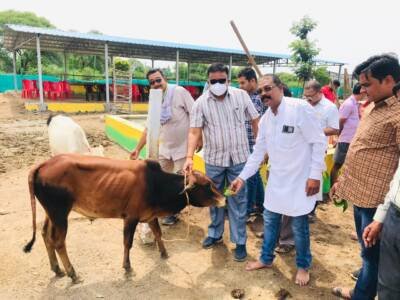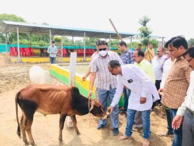 पाटन। आदर्श गौठान पाटन में नगर पंचायत अध्यक्ष भूपेंद्र कश्यप के मुख्य आतिथ्य में हरेली तिहार का आयोजन किया गया। उक्त कार्यक्रम में हरेली तिहार के परंपरा अनुसार हल, गैंती, रापा सहित अन्य कृषि उपकरणों की पूजा अर्चना करने के पश्चात् गायों को लोदी खिलाया गया।