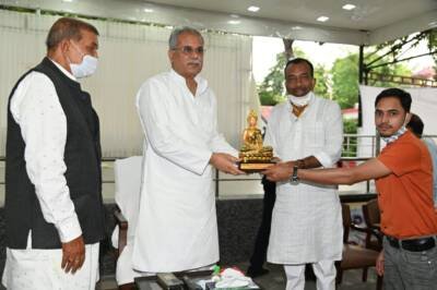 रायपुरमुख्यमंत्री श्री भूपेश बघेल से आज यहां उनके निवास कार्यालय में छत्तीसगढ़ मनवा कुर्मी क्षत्रिय समाज के केन्द्रीय अध्यक्ष डॉ. रामकुमार सिरमौर के नेतृत्व में समाज के प्रतिनिधि मंडल ने मुलाकात की। प्रतिनिधि मंडल ने राज्य में सभी वर्गों के उत्थान के लिए मुख्यमंत्री श्री भूपेश बघेल के नेतृत्व में राज्य सरकार द्वारा किए जा रहे प्रयासों की सराहना की। छत्तीसगढ़ मनवा कुर्मी क्षत्रिय समाज ने इस मौके पर मुख्यमंत्री श्री भूपेश बघेल को उनका पोट्रेट भेंटकर सम्मानित किया। प्रतिनिधि मंडल ने श्री प्रमोद नायक को जिला केन्द्रीय सहकारी बैंक बिलासपुर एवं श्री जवाहर वर्मा को जिला केन्द्रीय सहकारी बैंक दुर्ग का अध्यक्ष बनाए जाने पर मुख्यमंत्री का आभार जताया।