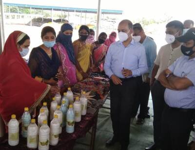 अपर मुख्य सचिव श्री सुब्रत साहू ने अकलतरा ब्लॉक के तरौद, अमोरा, किरारी, नवागढ़ ब्लॉक के खोखरा गौठानों के निरीक्षण के दौरान स्व-सहायता समूहों की महिलाओं से चर्चा की। उन्होंने अधिकारियों को महिलाओं के आर्थिक स्वावलंबन के लिए प्रत्येक गौठान में वर्मी कम्पोस्ट के निर्माण के साथ-साथ कम से कम पांच आय मूलक गतिविधियां अनिवार्य रूप से संचालित करने के निर्देश दिए, ताकि महिला समूहों को गौठानों में रोजगार मिलने के साथ-साथ उन्हें और अधिक लाभ मिल सके। आदर्श गौठान खोखरा में महिला स्व-सहायता समूह द्वारा वर्मी कम्पोस्ट के साथ-साथ मशरूम का उत्पादन, फिनाईल व पैरदान का निर्माण किया जा रहा है। अपर मुख्य सचिव श्री साहू एवं विशेष सचिव डॉ.भारतीदासन ने महिला समूहों द्वारा उत्पादित सामग्री का मुआयना किया और फिनाईल, पैरदान की क्वालिटी, की सराहना की। खोखरा में तीन महिला स्व-सहायता समूह गौठान से जुड़कर आर्थिक रूप से आत्मनिर्भरता की ओर अग्रसर हैं। गौठान में पशुओं के हरे चारे की व्यवस्था के लिए 10 एकड़ में रोपित नेपियर घास का भी उन्होंने अवलोकन किया और महिला समूहों, गौठान समिति के प्रयासांे की प्रशंसा की। इस मौके पर अपर मुख्य सचिव एवं विशेष सचिव सहित अन्य अधिकारियों ने गौठान में कटहल और आम के पौधे रोपित किए। अपर मुख्य सचिव एवं विशेष सचिव ने पामगढ़ विकासखंड के ग्राम भैंसों स्थित हायर सेकेण्डरी स्कूल का भी मुआयना किया और बच्चों से पढ़ाई-लिखाई के बारे में जानकारी ली। उन्होंने शाला प्राचार्य और शिक्षकों को कोरोना संक्रमण से बचाव के लिए स्कूल में प्रोटोकॉल का कड़ाई से पालन सुनिश्चित करने सेनेटाईजेशन और साफ-सफाई का विशेष रूप से ध्यान रखने के निर्देश दिए।
