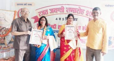 भाटापारा। कमलाकांत शुक्ला इंस्टीट्यूट भाटापारा कि सहायक प्राध्यापक पूर्णिमा कौशिक,रायपुर को विश्व हिंदी साहित्य सेवा संस्थान प्रयागराज (उ.प्र.) के दो दिवसीय 4- 5 सितंबर को रजत जयंती समारोह के उपलक्ष्य पर सम्मानित किया गया। आपने 2021 में संस्था द्वारा आयोजित आभासी काव्य प्रतियोगिता में संस्था की प्रतिभा में प्रथम स्थान प्राप्त किया । आयोजन स्थल प्रयागराज उ. प्र. के नैनी, में संस्थान के अध्यक्ष प्राचार्य डॉ शहाबुद्दीन नियाज मोहम्मद शेख, पुणे, महाराष्ट्र के कर कमलों से तथा संस्थान के संरक्षक श्री राजकुमार भारती एवं संस्थान के सचिव गोकुलेश्वर कुमार द्विवेदी, दिनेश चंद्र कौशिक की उपस्थिति में स्मृति चिन्ह एवं सम्मान पत्र प्रदान किया गया।