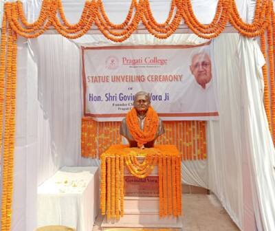 रायपुर। प्रदेश के वरिष्ठ पत्रकार, शिक्षाविद् एवं प्रगति कॉलेज के संस्थापक अध्यक्ष गोविन्दलाल वोरा की मूर्ति का कॉलेज परिसर में शुक्रवार को अनावरण किया गया। समारोह में मुख्य अतिथि पं. रविशंकर शुक्ल विश्वविद्यालय के कुलपति डॉ.केशरीलाल वर्मा थे। मूर्ति अनावरण के पश्चात् अतिथियों ने दीप प्रज्जवलित कर कार्यक्रम की शुरूआत की।