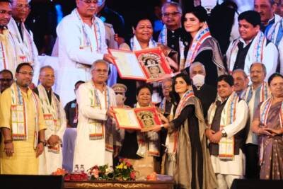 रायपुर/ छत्तीसगढ़ की राज्यपाल सुश्री अनसुईया उइके ने राज्य स्थापना दिवस के अवसर पर राजधानी रायपुर के साइंस कॉलेज मैदान पर आयोजित राज्य अलंकरण एवं राज्योत्सव के समापन समारोह पर छत्तीसगढ़ की विभिन्न विभूतियों को उनकी उपलब्धियों एवं राज्य के विकास में योगदान के लिए राज्य अलंकरण सम्मानों से सम्मानित किया। कार्यक्रम की अध्यक्षता मुख्यमंत्री श्री भूपेश बघेल ने की। इस अवसर पर नेता प्रतिपक्ष श्री धरमलाल कौशिक सहित मंत्रिमंडल के सदस्य, संसदीय सचिव, सांसद, विधायक, निगम मंडल के अध्यक्ष और अन्य जनप्रतिनिधि उपस्थित थे।