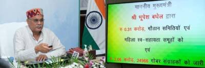 रायपुर/ मुख्यमंत्री श्री भूपेश बघेल ने आज यहां अपने निवास कार्यालय में आयोजित गोधन न्याय योजना के राशि अंतरण के ऑनलाईन कार्यक्रम में गौठानों में गोबर बेचने वाले पशुपालकों, ग्रामीणों, गौठान समितियों एवं महिला स्व-सहायता समूहों को 2 करोड़ 37 लाख रूपए की राशि जारी की। जिसमें गोबर विक्रेताओं को 2 करोड़ 6 लाख रूपए तथा गौठान समितियों और महिला समूहों का लाभांश 31 लाख रूपए शामिल है। मुख्यमंत्री श्री भूपेश बघेल ने इस अवसर पर कार्यक्रम को सम्बोधित करते हुए कहा कि गोबर से गौठानों में बनने वाली वर्मी कम्पोस्ट और सुपर कम्पोस्ट खाद रासासनिक खाद का सशक्त विकल्प बनी है।