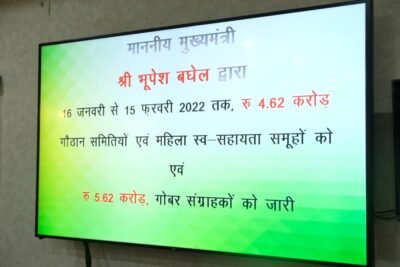 रायपुर/ मुख्यमंत्री श्री भूपेश बघेल ने आज यहां अपने निवास कार्यालय में गोधन न्याय योजना के राशि अंतरण कार्यक्रम के तहत पशुपालक ग्रामीणों, गौठानों से जुड़े महिला समूहों और गौठान समितियों को 10 करोड़ 24 लाख रूपए की राशि ऑनलाइन जारी की, इस राशि में 16 जनवरी से 15 फरवरी तक राज्य के गौठानों में पशुपालक ग्रामीणों, किसानों, भूमिहीनों से गोधन न्याय योजना के तहत क्रय किए गए गोबर के एवज में 5 करोड़ 62 लाख रूपए का भुगतान तथा गौठान समितियों को 1.88 करोड़ और महिला समूहों को 2.75 करोड़ रूपए की लाभांश राशि शामिल है।