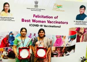 कबीरधाम जिले के प्राथमिक स्वास्थ्य केंद्र पोड़ी की टीकाकरण कर्मी सुश्री पिंकी खरे ने कोरोना टीकाकरण अभियान के दौरान 425 सत्रों में अकेले 70 हजार 333 टीके लगाए हैं। वहीं रायगढ़ के प्राथमिक स्वास्थ्य केंद्र किरोड़ीमल नगर की श्रीमती प्रमिला देवांगन ने 402 सत्रों में अकेले 45 हजार 463 टीके लगाए हैं। कोविन एप्लीकेशन में दर्ज टीकाकरण डॉटा के मूल्यांकन के आधार पर केन्द्रीय स्वास्थ्य मंत्रालय द्वारा प्रदेश की इन दोनों टीकाकरण कर्मियों का चयन किया गया है।