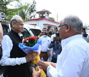0 राजस्थान के मुख्यमंत्री अशोक गहलोत ने कहा वे बड़ी उम्मीद लेकर छत्तीसगढ़ आए हैं, संकट की घड़ी में छत्तीसगढ़ से मदद की उम्मीद है