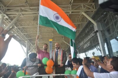 *टॉर्च के स्वागत में स्कूली बच्चों और खिलाड़ियों ने बरसाए फूल