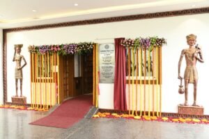 रायपुर/मुख्यमंत्री श्री भूपेश बघेल ने आज विधानसभा में अपने कार्यालय कक्ष के सौंदर्यीकरण कार्य का लोकार्पण किया। मुख्यमंत्री के विधानसभा स्थित कार्यालय कक्ष को पूरी तरह से छत्तीसगढ़ की ग्रामीण सभ्यता एवं बस्तर की संस्कृति की थीम पर तैयार किया गया है। कार्यालय कक्ष का प्रवेश द्वार गांव के किसी घर के प्रवेश द्वार का अहसास दिलाता है। कार्यालय कक्ष के प्रवेश पर बस्तर के परंपरागत आदिवासी नृत्यों को उकेरा गया है जिससे बस्तर की संस्कृति का सजीव अहसास होता है। बस्तर आर्ट के साथ ही छत्तीसगढ़ के वनोपज पर आधारित कलाकृतियां भी उकेरी गयी हैं।