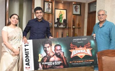 मुख्यमंत्री को ‘द जंगल रंबल’ प्रोफेशनल बॉक्सिंग फाइट का पहला टिकट भेंट, पहली बार रायपुर में आयोजित फाइट में विजेंदर सिंह करेंगे घाना के इलिआसु सुले से मुकाबला