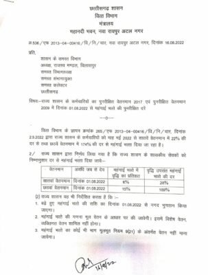 राज्य शासन द्वारा यह भी निर्णय लिया गया है कि बढ़े हुए महंगाई भत्ते की राशि एक अगस्त 2022 से नगद भुगतान किया जाएगा। महंगाई भत्ते की गणना मूल वेतन के आधार पर की जाएगी। इसमें विशेष वेतन, व्यक्तिगत वेतन शामिल नहीं होगा। महंगाई भत्ते का कोई भी भाग मूल नियम 9 (21) के अंतर्गत वेतन नहीं माना जाएगा।