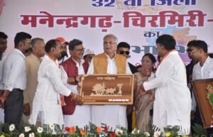 रायपुर/ मुख्यमंत्री श्री भूपेश बघेल ने आज मनेन्द्रगढ़ में आयोजित कार्यक्रम में मनेन्द्रगढ़-चिरमिरी-भरतपुर जिले का शुभारंभ किया। साथ ही उन्होंने 200 करोड़ 73 लाख रूपए के विकास कार्यों का लोकार्पण-भूमिपूजन किया। इस अवसर पर मुख्यमंत्री का फूलमाला, मुकुट पहनाकर, पुष्प वर्षा तथा सरोपा भेंट कर स्वागत किया गया। मुख्यमंत्री ने अपने अभूतपूर्व अभिनंदन के लिए क्षेत्रवासियों का आभार जताया और नए जिले की बधाई और शुभकामनाएं दी।