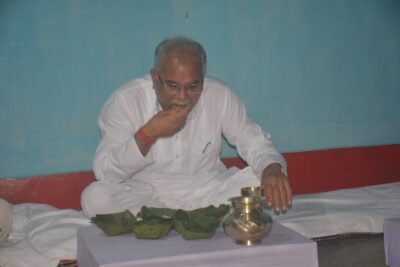 रायपुर/ मुख्यमंत्री श्री भूपेश बघेल प्रदेशव्यापी भेंट मुलाकात अभियान के तहत आज रायगढ़ जिले के विधानसभा क्षेत्र धरमजयगढ़ अंतर्गत ग्राम घरघोड़ा पहुंचे। उन्होंने ग्राम घरघोड़ा हेलीपेड आगमन के बाद ग्राम पंचायत भेंड्री, प्रेमनगर मोहल्ला निवासी किसान श्री चमरु पैकरा (पुत्र हरिकृष्ण पैकरा, बाबूलाल पैकरा) के घर पहुंचे और उनके घर मे बड़े सादगी के साथ भोजन ग्रहण किया। भोजन में मुख्यमंत्री ने श्री चमरु पैकरा के घर पर चावल, दाल, रोटी सहित क्षेत्रीय करेला भाजी और मुनगा भाजी के स्वाद का भी आनंद लिया। इसके साथ ही उनके भोजन में लाल भाज़ी- बड़ी की सब्जी, लौकी चना दाल, बैंगन मटर का भर्ता, आम की चटनी, टमाटर की चटनी और अंकुरित सलाद आदि शामिल थे। मुख्यमंत्री श्री बघेल के साथ ही कैबिनेट मंत्री डॉ. प्रेमसाय टेकाम, धरमजयगढ़ विधायक लालजीत सिंह राठिया, किसान श्री चमरु पैकरा ने भी भोजन किया। भोजन के पूर्व मुख्यमंत्री श्री बघेल का किसान श्री चमरु पैकरा सहित उनके परिवारजनो ने अपने घर के मुख्य द्वार पर कलश दीप जलाकर मुख्यमंत्री को चंदन, आरती कर और पुष्प गुच्छ भेंट करके आत्मीय स्वागत किया।
