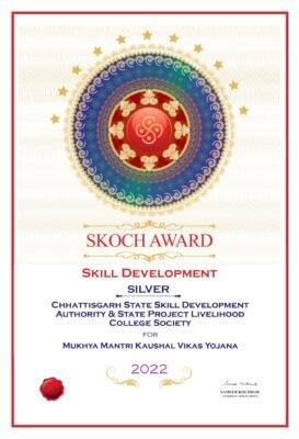रायपुर/ देश में सबसे कम बेरोजगारी दर वाले राज्य का गौरव हासिल करने वाले छत्तीसगढ़ राज्य को राष्ट्रीय स्तर पर आज एक और गौरवपूर्ण सम्मान से नवाजा गया है। मुख्यमंत्री श्री भूपेश बघेल के नेतृत्व में छत्तीसगढ़ राज्य कौशल विकास प्राधिकरण अंतर्गत संचालित मुख्यमंत्री कौशल विकास योजना को गुणवत्तायुक्त एवं रोजगार आधारित निःशुल्क कौशल प्रशिक्षण प्रदान करने के लिए राष्ट्रीय स्तर के स्कॉच सिल्वर अवार्ड-2022 से सम्मानित किया गया है। मुख्यमंत्री श्री भूपेश बघेल एवं उच्च शिक्षा मंत्री तथा कौशल विकास मंत्री श्री उमेश पटेल ने छत्तीसगढ़ राज्य कौशल विकास प्राधिकरण को इस उल्लेखनीय उपलब्धि के लिए बधाई और शुभकामनाएं दी है।