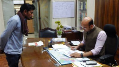 रायपुर/ कलेक्टर डॉ सर्वेश्वर भुरे ने आज यहां अपने कार्यालय कक्ष में जन चौपाल के माध्यम से आम नागरिकों की समस्याएं सुनी। उन्होंने जन चौपाल के माध्यम से जिले के दूरदराज के क्षेत्रों से आए नागरिकों, ग्रामीण जनों, महिलाओं की समस्याओं को सुना और आवेदनों पर नियमानुसार त्वरित निराकरण करने के निर्देश संबंधित अधिकारियों को दिए। आज 25 से अधिक लोगों ने आवेदन दिया। इन आवेदनों पर तत्काल संज्ञान लेते हुए कलेक्टर डॉ भुरे ने संबंधित अधिकारियों से दूरभाष पर चर्चा कर वस्तु स्थिति की जानकारी ली और यथासंभव कार्य को पूरा करने के निर्देश दिए।