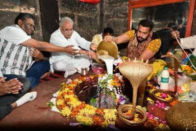 राजिम/ मुख्यमंत्री श्री भूपेश बघेल ने राजिम में भगवान कुलेश्वरनाथ मंदिर में पूजा-अर्चना की। मुख्यमंत्री ने प्रदेश में सुख, शांति एवं खुशहाली के लिए प्रार्थना की । उन्होंने विधि-विधान पूर्वक मंत्रोच्चार के साथ पूजा अर्चना की।