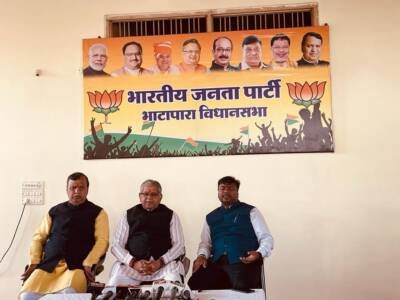 भाटापारा। छत्तीसगढ़ सरकार के 4 साल पूरे होने पर भाजपा नेता, पूर्व नेता प्रतिपक्ष धरम लाल कौशिक ने भाजपा कार्यालय भाटापारा में प्रेस वार्ता कर कांग्रेस सरकार पर तीखा प्रहार किया हैं. प्रेसवार्ता में क्षेत्रीय विधायक,उपाध्यक्ष भाजपा शिवरतन शर्मा, पूर्व मंत्री भाजपा महामंत्री केदार कश्यप मौजूद रहे.