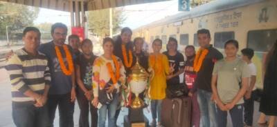 भाटापारा पहुंचने पर जिले की खेल अधिकारी प्रीति बंछोर बिजौरा एवं अंतरराष्ट्रीय कोच सुधीर वर्मा और सभी साथी खिलाडियों का भाटापारा स्टेशन पर जोरशोर से स्वागत किय़ा गया।