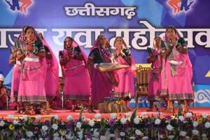 रायपुर। साइंस कॉलेज मैदान में आयोजित राज्य स्तरीय युवा महोत्सव के दूसरे दिन मंच पर छत्तीसगढ़ के लोक नर्तक दलों ने सुआ नृत्य की शानदार प्रस्तुति दी। 15 से 40 वर्ष आयु वर्ग में बलौदाबाजार, सक्ति, दंतेवाड़ा, खैरागढ़-छुईखदान-गंडई और सूरजपुर के कलाकारों ने सुआ नृत्य प्रस्तुत कर ऐसा शमा बांधा की दर्शक झूम उठे। 15 से 40 वर्ष आयु वर्ग के बीच आयोजित इस नृत्य प्रतियोगिता में पहला स्थान खैरागढ़-छुईखदान-गंडई, द्वितीय स्थान बलौदाबाजार एवं तीसरा स्थान सूरजपुर जिले के प्रतिभागियों को मिला।