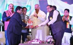 मुख्यमंत्री श्री भूपेश बघेल आज राजधानी के एक निजी होटल में छत्तीसगढ़ प्रदेश राईस मिलर्स एसोसिएशन के तत्वाधान में आयोजित वार्षिक सम्मेलन को सम्बोधित कर रहे थे। इस मौके पर एसोसिएशन द्वारा मुख्यमंत्री श्री भूपेश बघेल को राज्य में राईस मिलरों के हित में लिए गए निर्णय की वजह से स्मृति चिन्ह भेंटकर सम्मानित किया गया। मुख्यमंत्री ने कार्यक्रम में राज्य भर के सभी जिलों से आए राईस मिलर्स संघ के अध्यक्ष सहित पदाधिकारियों को भी सम्मानित किया। इस अवसर पर खाद्य मंत्री श्री अमरजीत भगत, नगरीय प्रशासन मंत्री डॉ. शिवकुमार डहरिया, राज्य खनिज विकास निगम के अध्यक्ष श्री गिरीश देवांगन सहित छत्तीसगढ़ राईस मिलर्स एसोसिएशन के अध्यक्ष श्री कैलाश रूंगटा सहित पदाधिकारी एवं बड़ी संख्या में राज्य भर के राईस मिलर्स उपस्थित थे।