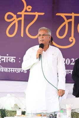 मुख्यमंत्री से बात करते हुए पार्वती साहू, खोरपा निवासी ने बताया कि उनके परिवार में 4 सदस्य हैं। 35 किलो चावल और नमक फ्री में मिलता है। मुख्यमंत्री ने मिट्टी तेल और गैस सिलेंडर का दर हितग्राहियो से पूछा, जिस पर उसने बताया कि लगातार रेट बढ़ रहा है। भटगांव निवासी हीरा बाई ने बताया कि गोधन न्याय योजना के तहत एक लाख 70 हजार रुपए का गोबर बेचा है। इसी पैसे से घर बनाने के लिए ईट मंगाई और बोर खनन भी करवाया है, नियमित गोबर बेच रही है और इससे मिल रहे पैसे को घर बनाने के काम में लगा रही है। गीता बाई निवासी भटगांव ने बताया कि वे बाड़ी योजना से सब्जी उगा रहे हैं। डढ़ एकड़ में सब्जी उगाकर उनके समूह ने 80 हजार रुपए कमाया है। उन्होंने अपने हिस्से की रकम से बहू के लिए गहना लिया है।