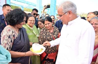 रायपुर/मुख्यमंत्री श्री बघेल ने महिला मड़ई में स्व-सहायता समूहों द्वारा निर्मित सामानों की बिक्री के लिए लगाए गए स्टॉलों के अवलोकन के दौरान मिलेट कैफे में ज्वार का बना केक काटकर महिलाओं का उत्साहवर्धन किया। इस मौके पर मुख्यमंत्री श्री बघेल को जिला सक्ती के नंदौरखुर्द के परमेश्वरी स्व-सहायता समूह ने जीका सिल्क की साड़ी और बिलासपुर जिले की प्रतिभा आरती महिला समूह द्वारा पगड़ी और जूट से बनी गणेश जी की मूर्ति भेंट की गई। इसी प्रकार मुख्यमंत्री को बाल जीवन ज्योति संस्था की मानसिक दिव्यांग बालिकाओं ने खुद से बनाया बुके भी भेंट किया। मुख्यमंत्री ने नारायणपुर के मां भवानी स्व-सहायता समूह से भी चर्चा की। गौरतलब है कि महिला मड़ई में महिला समूहों द्वारा लगाए गए 54 स्टालों के माध्यम से लगभग 25 लाख रूपए की दैनिक उपयोग की वस्तुओं की बिक्री की गई।