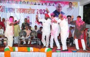 रायपुर/ मुख्यमंत्री भूपेश बघेल आज रंगों के पर्व होली के अवसर पर राजधानी रायपुर के सुभाष स्टेडियम में आयोजित होली मिलन समारोह में शामिल हुए। उन्होंने निगम परिवार द्वारा आयोजित समारोह में प्रदेशवासियों, निगम के पदाधिकारियों, अधिकारियों-कर्मचारियों, सफाई कामगारों को होली पर्व की बधाई और शुभकामनाएं दी। महापौर ढेबर ने गौठान में महिला स्वसहायता समूहों द्वारा गोबर से बने गुलाल से तिलक लगाकर मुख्यमंत्री भूपेश बघेल का स्वागत किया और उन्हें शुभकामनाएं दीं।