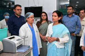 केन्द्रीय स्वास्थ्य राज्य मंत्री डॉ. पवार ने हमर लैब के भ्रमण के दौरान पंजीयन काउंटर, सैंपल कलेक्शन काउंटर, आयुष्मान कक्ष, कियोस्क एवं सहायता केंद्र, बैक्टिरियोलॉजी लैब, हिमैटोलॉजी लैब, कल्चर कक्ष और कोल्ड कक्ष का अवलोकन किया। केन्द्रीय स्वास्थ्य राज्य मंत्री को हमर लैब के राज्य नोडल अधिकारी डॉ. अभ्युदय शक्ति तिवारी ने बताया कि लैब में 120 तरह के जांच की सुविधा है। वर्ष-2022 में यहां 96 हजार 238 मरीजों के पांच लाख 80 हजार 952 टेस्ट किए गए हैं। वहीं वर्ष-2021 में एक लाख दो हजार 648 मरीजों के चार लाख 20 हजार 540 टेस्ट किए गए थे। केन्द्रीय स्वास्थ्य राज्य मंत्री ने अच्छे कार्यों के लिए हमर लैब की डॉ. माधुरी वानखेड़े को श्रीफल और शॉल भेंटकर सम्मानित किया। हमर अस्पताल और हमर लैब के निरीक्षण के दौरान स्वास्थ्य विभाग के संयुक्त संचालक डॉ. एस.के. पामभोई, रायपुर के मुख्य चिकित्सा एवं स्वास्थ्य अधिकारी डॉ. मिथिलेश चौधरी, सिविल सर्जन डॉ. पी.के. गुप्ता, ईएनटी विशेषज्ञ डॉ. एस.के. भंडारी, राष्ट्रीय स्वास्थ्य मिशन के प्रभारी राज्य कार्यक्रम प्रबंधक श्री आनंद साहू और शहरी स्वास्थ्य के राज्य कार्यक्रम प्रबंधक डॉ. प्रदीप टंडन भी मौजूद थे।