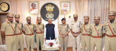 रायपुर/ राज्यपाल श्री विश्वभूषण हरिचंदन से आज यहां राजभवन में नेताजी सुभाषचंद्रबोस राज्य पुलिस अकादमी, चंदखुरी, रायपुर के निदेशक श्री रतनलाल डांगी के नेतृत्व में भारतीय पुलिस सेवा के सात परिवीक्षाधीन अधिकारियों ने भेंटकर उनका अभिवादन किया।