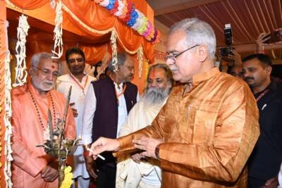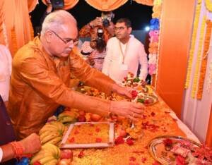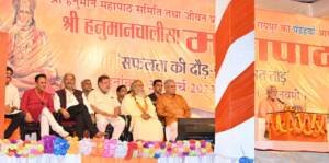 रायपुर/ मुख्यमंत्री श्री भूपेश बघेल आज शाम यहां राजधानी रायपुर के बलवीर सिंह जुनेजा इंडोर स्टेडियम परिसर में श्री हनुमान महापाठ समिति तथा जीवन प्रबंधन समूह रायपुर द्वारा आयोजित श्री हनुमान चालीसा महापाठ कार्यक्रम में शामिल हुए। इस अवसर पर मुख्यमंत्री ने उपस्थित सभी हनुमान भक्तों के साथ हनुमान चालीसा का पाठ किया। कार्यक्रम में मुख्यमंत्री श्री बघेल ने पंडित विजयशंकर मेहता द्वारा ‘सफलता की दौड़-परिवार मत तोड़’ विषय पर व्याख्यान का श्रवण किया।