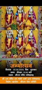 मनेंद्रगढ़।श्री राम मंदिर ट्रस्ट के संचालक रघुनाथ पोद्दार ने सभी के सहयोग से श्री राम मंदिर परिसर में श्री राम जन्मोत्सव बड़े ही धूमधाम से मनाया गया ।श्री राम मंदिर ट्रस्ट द्वारा आयोजित रामनवमी पर्व बड़ी धूमधाम से बिना किसी विध्न के पूर्ण हुआ, जहां एक और 9दिनो तक चले प्रभात फेरी मे श्रद्धालुओं की अपनी सहभागिता बढ़-चढ़कर दिखाई श्री राम जन्मोत्सव का कार्यक्रम भी बहुत भव्य रुप से मना एवं शोभा यात्रा एवं भोग भंडारा मे ऐतिहासिक भीड़ उमडी, श्रीरामनवमी पर्व मे पधारे सभी श्रद्धालुओं का स्वागत वंदन अभिनंदन ।