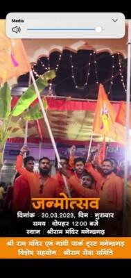 ट्रस्ट अपने सहयोगी विश्व हिंदू परिषद एवं बजरंग दल द्वारा सुबह 9 दिन प्रभात फेरी मे सक्रिय सहयोग करने पर उनकी बहुत-बहुत आभारी है। ट्रस्ट अपने सहयोगी श्री राम सेवा समिति की भी बहुत-बहुत आभारी है जिन्होंने भोग-भंडारा प्रसाद की जो बेहतरीन व्यवस्था की , अनुमानित नौ दस हजार श्रद्धालुओं ने प्रसाद ग्रहण किया श्री राम मंदिर ट्रस्ट श्री राम सेवा समिति के सभी सदस्यों का बहुत-बहुत आभारी है एवं धन्यवाद ज्ञापित करता है। अंत में श्री राम नवमी महापर्व को भव्य दिव्य एवं ऐतिहासिक बनाने में तन मन धन से किए गए सभी श्रद्धालुओं का हार्दिक आभार एवं धन्यवाद।
