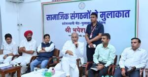 रायपुर/ मुख्यमंत्री श्री भूपेश बघेल से आज यहां उनके निवास कार्यालय परिसर में रायपुर उत्तर विधानसभा क्षेत्र के अनेक सामाजिक संगठनों और प्रतिनिधि मंडलों ने भेंट-मुलाकात की। सामाजिक संगठनों के प्रतिनिधियों नेे चर्चा के दौरान मुख्यमंत्री के समक्ष अपनी समस्याएं और मांगों को रखा। मुख्यमंत्री से अनेक सामाजिक संगठनों ने सामाजिक भवन के लिए जमीन उपलब्ध कराने और भवन निर्माण के लिए आर्थिक सहयोग मांगा। जिस पर मुख्यमंत्री ने उन्हें शासकीय जमीन के मूल्य की 10 से 15 प्रतिशत राशि की दर से जमीन क्रय कर रजिस्ट्री कराने को कहा। इसके उपरांत उन्होंने भवन निर्माण के लिए आर्थिक सहयोग देने का आश्वासन दिया।