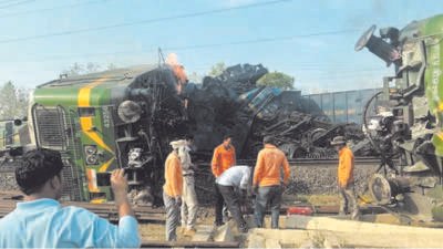 दो मालगाडिय़ों में टक्कर: 9 से10 डिब्बे पटरी से उतरे, लोको पायलट की मौत, कई ट्रेनें रद्द
