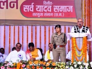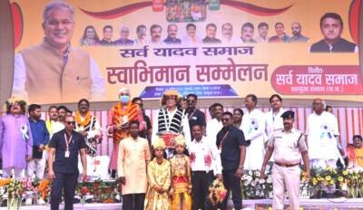 महासम्मेलन में मुख्यमंत्री श्री बघेल ने सर्व यादव समाज सरगुजा द्वारा आयोजित स्वाभिमान सम्मेलन के भव्य आयोजन की बधाई एवं शुभकामनाएं दी। उन्होंने सभा को संबोधित करते हुए कहा कि सर्व यादव समाज का इतिहास में महत्वपूर्ण योगदान रहा है। भगवान श्री कृष्ण जिन्होंने गीता जैसा महान ग्रंथ इस दुनिया को दिया, यादव समाज उनके वंशज हैं। उन्होंने कहा कि यादव समाज का प्रेम और सौहार्द्र से सरगुजा और पूरे प्रदेश की उन्नति और प्रगति में सहयोग बना रहे। उन्होंने कहा कि छत्तीसगढ़ शासन प्रदेश वासियों की प्रगति के लिए निरंतर कार्य कर रहा है। हमने इस वर्ष फैसला किया है कि समर्थन मूल्य में 20 क्विंटल प्रति एकड़ धान की खरीदी की जाएगी। यादव समाज गौ-माता के सेवक रहे हैं। इसी तरह छत्तीसगढ़ शासन भी गोधन न्याय योजना और नरवा, गरवा, घुरवा और बाड़ी जैसी योजनाओं के माध्यम से गौ सेवा कर रही है। इन योजनाओं से गौपालकों को भी फायदा हो रहा है। उन्होंने कहा कि जिस तरह आदिवासी समुदाय जल, जंगल और जमीन से जुड़ा हुआ है, उसी तरह वनांचलों में यादव समाज के लोग भी कई वर्षों से बसे हुए हैं।