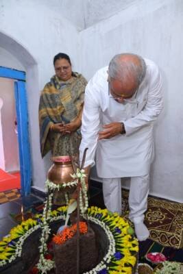 धमतरी/ मुख्यमंत्री श्री भूपेश बघेल ने आज धमतरी जिले के सेमरा-बी स्थित प्राचीन शिव मंदिर में भगवान शिव का जलाभिषेक और पूजा-अर्चना कर प्रदेशवासियों की सुख-समृद्धि और खुशहाली की कामना की।