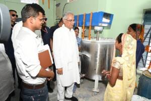 डिस्प्ले कक्ष में मुख्यमंत्री ने समूह की महिलाओं से चर्चा की। डेहरकापा की रुक्मिणी नवरंग ने बताया कि हम लोग यहां कई तरह के कार्य कर रहे हैं। दोना-पत्तल से हर महीने दस हजार रुपए तक कमाई कर रहे हैं। अब मछली पालन भी आरंभ कर दिए हैं।