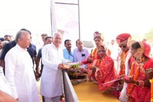 रायपुर/ मुख्यमंत्री श्री भूपेश बघेल आज राजनांदगांव विकासखंड के ग्राम सिंघोला में आयोजित माँ भानेश्वरी जयंती महोत्सव एवं सामूहिक आदर्श विवाह कार्यक्रम में शामिल हुए। इस अवसर पर मुख्यमंत्री श्री बघेल 35 करोड़ 79 लाख 86 हजार रूपए के 11 विकास कार्यों का भूमिपूजन एवं लोकार्पण किया। शासन की विभिन्न विभागीय योजना अंतर्गत 40 हितग्राहियों को 9 लाख 78 हजार रूपए के सामग्री और चेक का वितरण किया। मुख्यमंत्री श्री बघेल राजनांदगांव प्रवास के दौरान राजस्व विभाग अंतर्गत भेंट-मुलाकात के दौरान की गई घोषणा के तहत 26 सामाजिक भवन एवं आहाता निर्माण के लिए 3 करोड़ 3 लाख रूपए की राशि का स्वीकृति आदेश पत्र हितग्राहियों को प्रदान किया। मुख्यमंत्री श्री भूपेश बघेल ने इस अवसर पर मंदिर परिसर से लेकर मुख्य मार्ग तक सीसी रोड निर्माण कार्य के लिए 30 लाख रूपए, साहू समाज के मंगल भवन के लिए 25 लाख रूपए, मंदिर परिसर में डोम निर्माण के लिए 17 लाख रूपए, तालाब सौंदर्यीकरण के लिए 10 लाख रूपए प्रदान करने की घोषणा की।