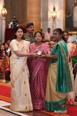 राष्ट्रपति श्रीमती मुर्मु ने राष्ट्रपति भवन नई दिल्ली में आयोजित गरिमामय समारोह में छत्तीसगढ़ में नक्सल ऑपरेशन में शहीद उपनिरीक्षक श्री दीपक भारद्वाज, शहीद प्रधान आरक्षक श्री सोढ़ी नारायण तथा शहीद एसटीएफ प्रधान आरक्षक श्री श्रवण कश्यप के परिजनों को कीर्ति चक्र प्रदान किया। समारोह में राष्ट्रपति श्रीमती मुर्मु ने शहीद श्री दीपक भारद्वाज की पत्नी श्रीमती प्रंतिका भारद्वाज, शहीद आरक्षक श्री सोढ़ी नारायण की पत्नी श्रीमती सुशीला सोढ़ी और एसटीएफ प्रधान आरक्षक शहीद श्री श्रवण कश्यप की पत्नी श्रीमती दुतिका कश्यप को कीर्ति चक्र प्रदान किया। इन तीनों जवानों को राष्ट्रपति द्वारा बस्तर अंचल के बीजापुर जिले में हुए नक्सल ऑपरेशन में सर्वोच्च साहस और बलिदान के लिए कीर्ति चक्र प्रदान कर सम्मानित किया गया है।